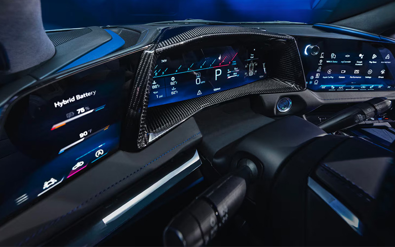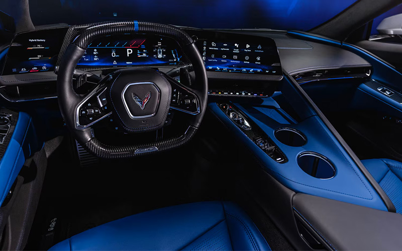 The heart of this machine is the new LT7 5.5-liter DOHC V8 engine with twin-turbocharging and a flat-plane crankshaft. Alone, this generates a staggering 1,064 horsepower. That’s then augmented by another 186 horsepower from the eAWD (electric All-Wheel Drive) on the front axle. All that power is managed by a rapid 8-speed dual-clutch transmission.