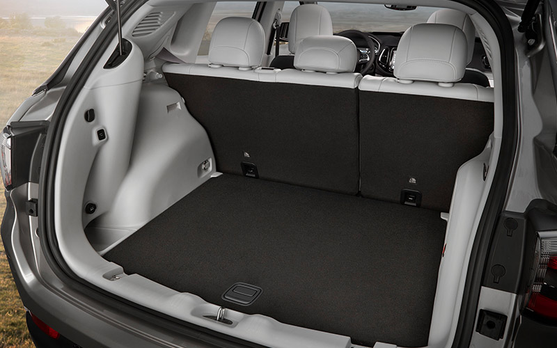 Physical controls are set in logical locations, which facilitate easy access. Unfortunately, the cabin materials are basic and aren’t nearly as high quality as they could be. However, buyers can upgrade to more luxurious cabin materials such as leather upholstery. When the rear seat is in use, there are 27 cubic feet of cargo space, but can expand to just short of 60 cubic feet with the rear seats folded. Additional features to spice up the Compass include a panoramic sunroof and remote start capabilities.