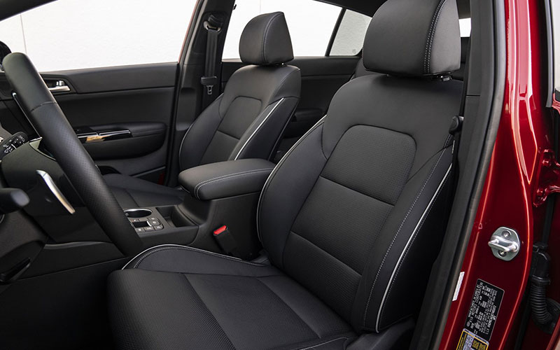 The Sportage EX gets gloss black interior trim, heated front seats, dual-zone automatic climate control, a hands-free tailgate, and a power-adjustable driver’s seat.