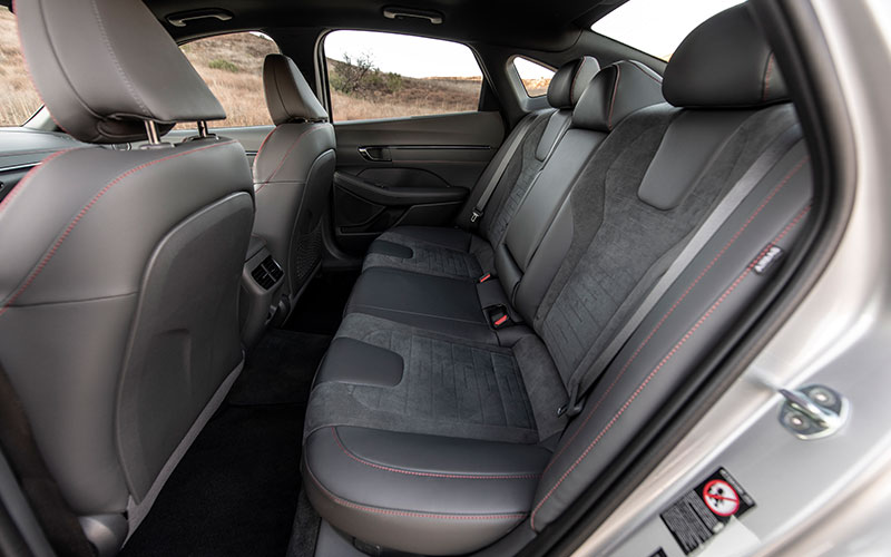 This is the fastest 2022 Hyundai Sonata with the same 290-horsepower engine from the Veloster N and the Kona N. It uses a dual-clutch eight-speed auto, which we love. It also gets 19-inch wheels, sport-tuned suspension and steering, sport seats, and N Line trim.