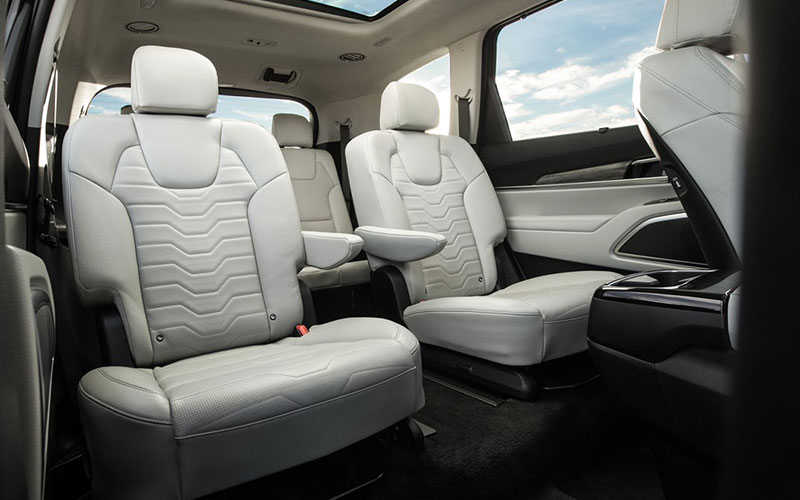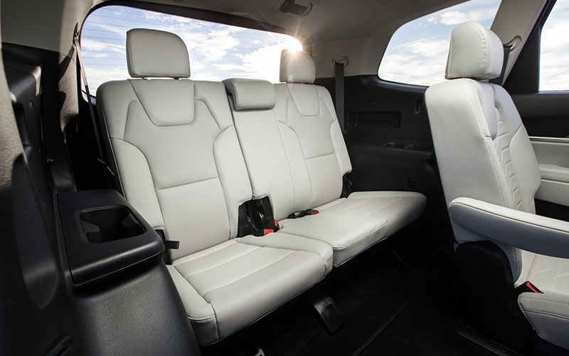 For just under $40,000, EX models add power folding exterior mirrors, a hands-free power liftgate, and LED tail lamps. Sound absorbing glass is added to the front row windows, the middle row windows get integrated sunshades, and everyone is swaddled in real leather seating. An additional USB port joins the connectivity party for a total of seven and the front seats add ventilation. For $1395, buyers can blackout the exterior with the Nightfall Package.