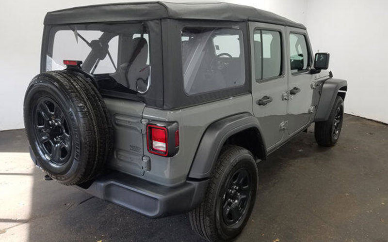 Most Wranglers come with the 3.6-liter V6 mentioned above but the 2.0-liter and the diesel, 17-inch steel wheels, all-season tires, a 7-inch infotainment system, Android Auto, Apple CarPlay, fog lights, skid plates, crank windows, tow hooks, and manual door locks.