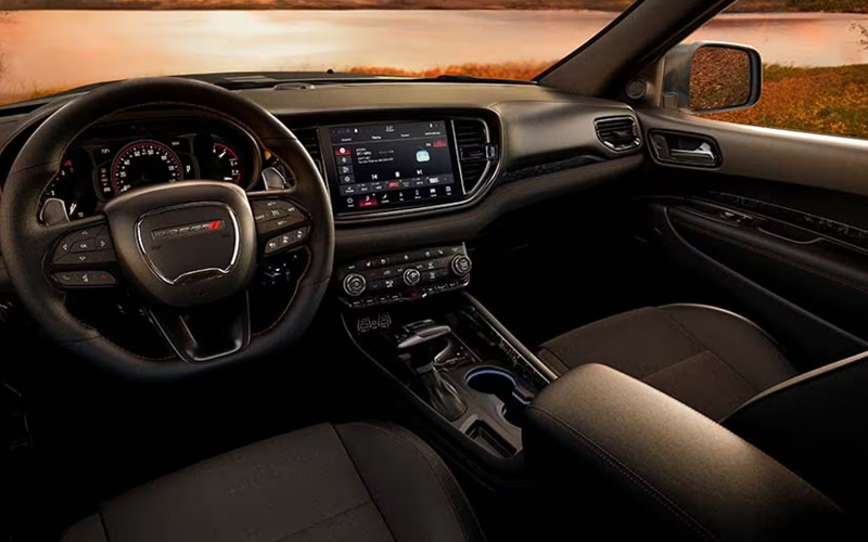 The entry-level Durango comes with 18-inch wheels, LED headlights, and a power-operated tailgate. Cabin features include an auto-dimming rearview mirror, 6-speaker stereo, and navigation. The GT Plus package adds 20-inch rims, a sunroof, an Alpine audio system, adaptive cruise control, leather, and more.