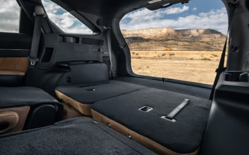 Every 2025 Sorento has 3 rows of seating, though occupancy ranges from 6 to 7 depending on the middle row setup. Like the similarly sized Hyundai Santa Fe, the Sorento has 42” of second-row legroom and 30” for the third row. Cargo capacity maxes out at 75 cubic feet and offers flexibility via a sliding second row, 50/50 split third row, and dual-level rear bay.