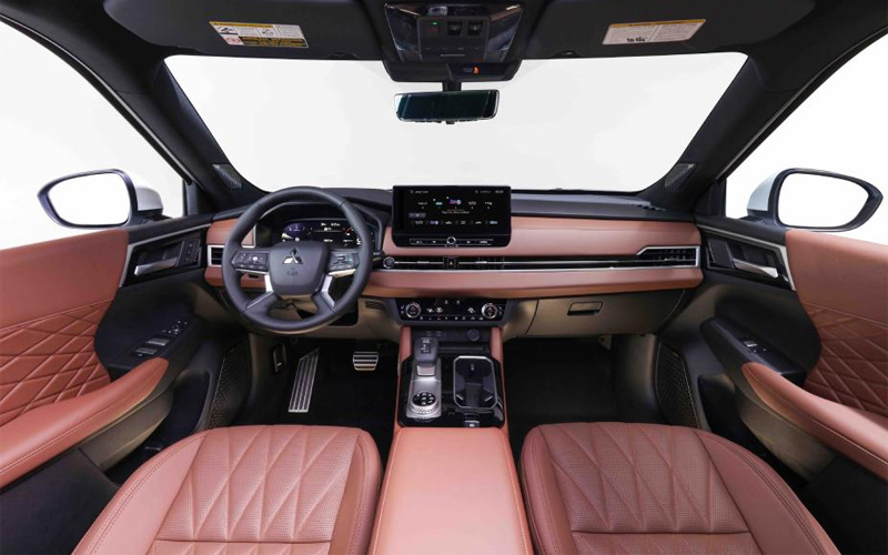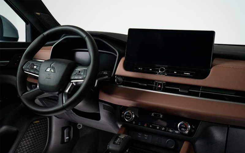 SEL Premium models take the Outlander SE and add special Brick Brown semi-aniline leather seats, the big Yamaha audio system, a head-up display, and a digital rearview mirror.
