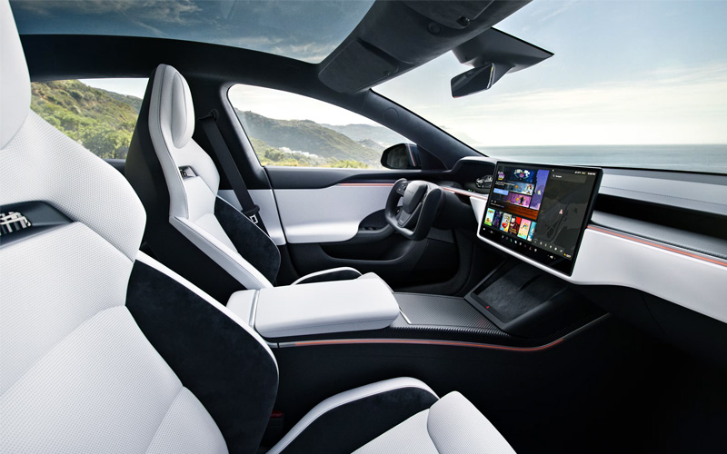 Along with the increased performance, Plaid models feature a body kit, optional 21” wheels, sport seats, and carbon-ceramic brakes as part of the available Track package.