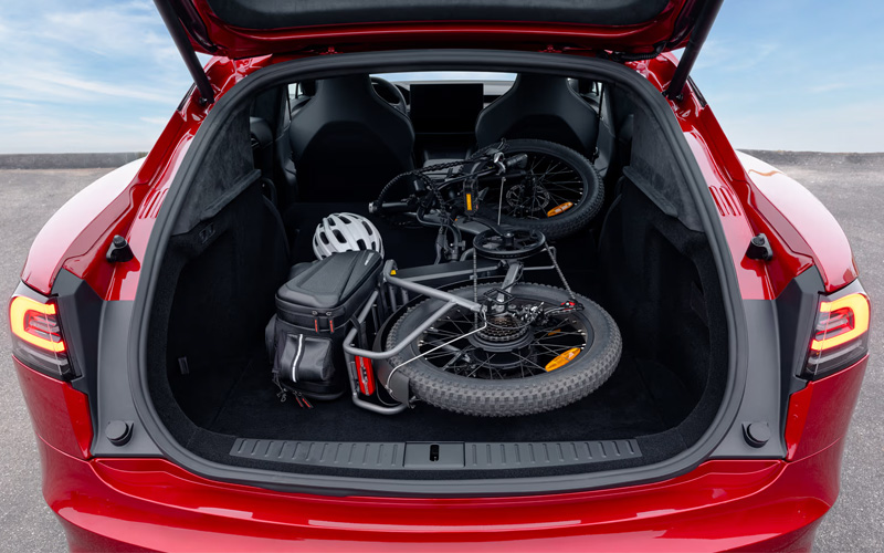 The entry-level Model S comes with 19” wheels, adaptive air suspension, and a hands-free trunk. Inside, you’ll find power-adjustable front seats, triple-zone automatic climate control, an all-glass roof, and wireless phone charging pads front and back.