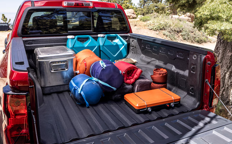 With rear-wheel drive, fuel economy comes in at 19 mpg city, 23 mpg highway, and 20 mpg combined. Adding 4WD drops those numbers by 1-2 mpg across the board. On all 2025 Colorados, except the ZR2 with its 6,000-pound rating, max towing capacity measures 7,700 pounds. A 5-foot cargo bed is the only option and payload capacity tops out at 1,684 pounds.