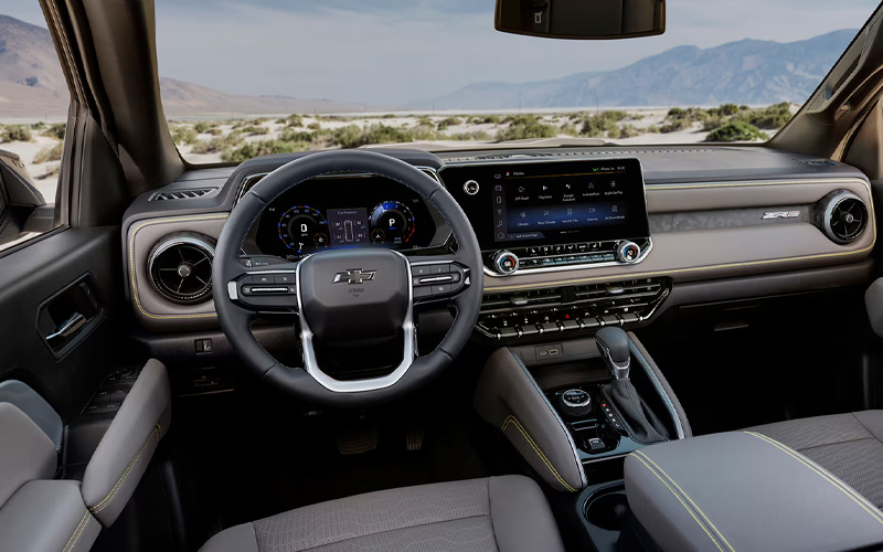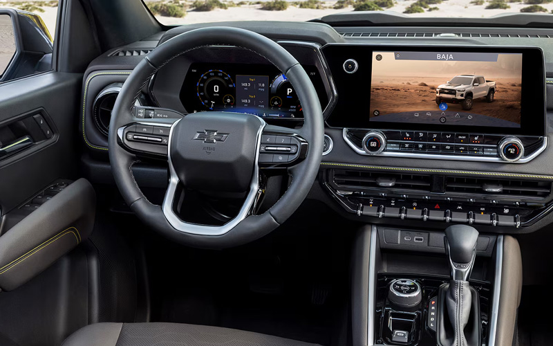 Every new Colorado comes with a fully digital gauge cluster, 11.3” central touchscreen, Google built-in, a Wi-Fi hotspot, and wireless smartphone integration. A Bose audio system is available, but even base Colorados have a 6-speaker stereo.