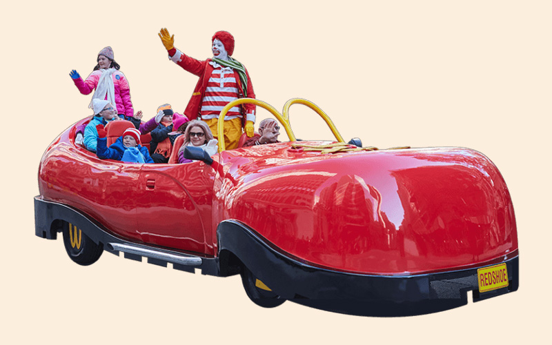 Float haulers aren’t the only vehicles on display at the Macy’s Thanksgiving Day Parade, there are also some fun vehicles that have made appearances to promote a show, movie, or product. One of the largest parade vehicles is the Santaland Express, a driving school bus chassis decorated to look like a holiday inspired Christmas locomotive. Macy’s has also included their own Red Delivery Truck, a classic running example of the REO Speedwagon.